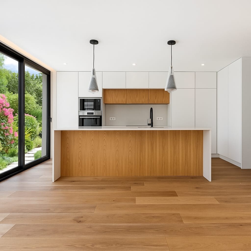 Piso 0: Cozinha voltada p/ o Exterior; Sala de Jantar e Estar c/ Recuperador de Calor e c/ Acesso ao Pátio Exterior Central, Jardim e Piscina; Instalação Sanitária de Serviço; Escritório; Garagem p/ 2 Carros;